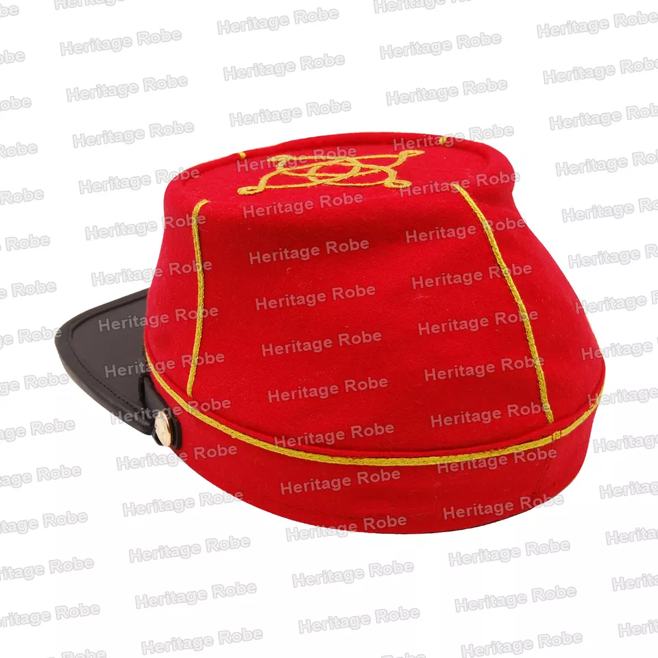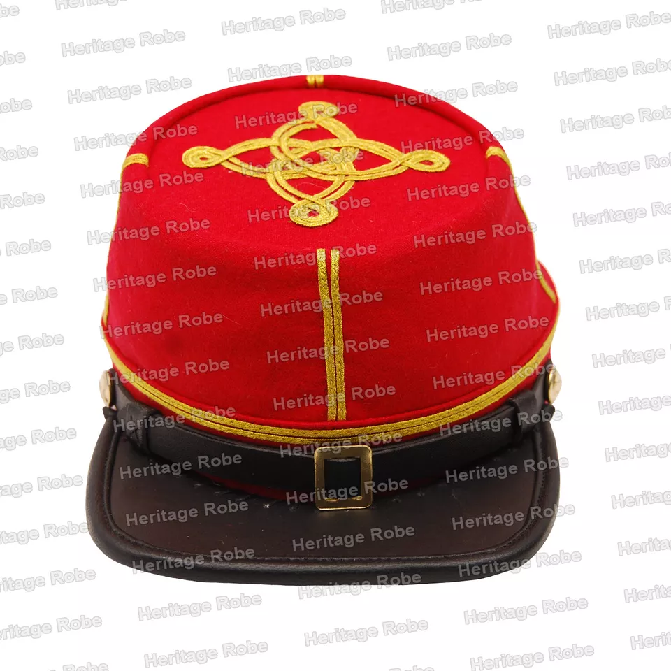 Home ACW Kepi Civil War Artillery Officer leather Peak Kepi, Red with Gold Rows of Braids